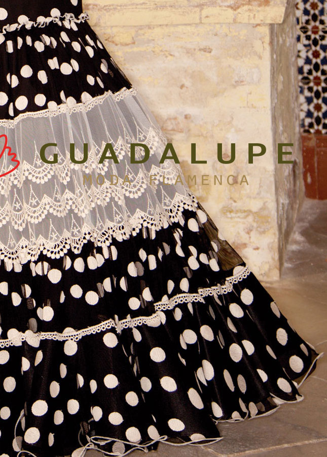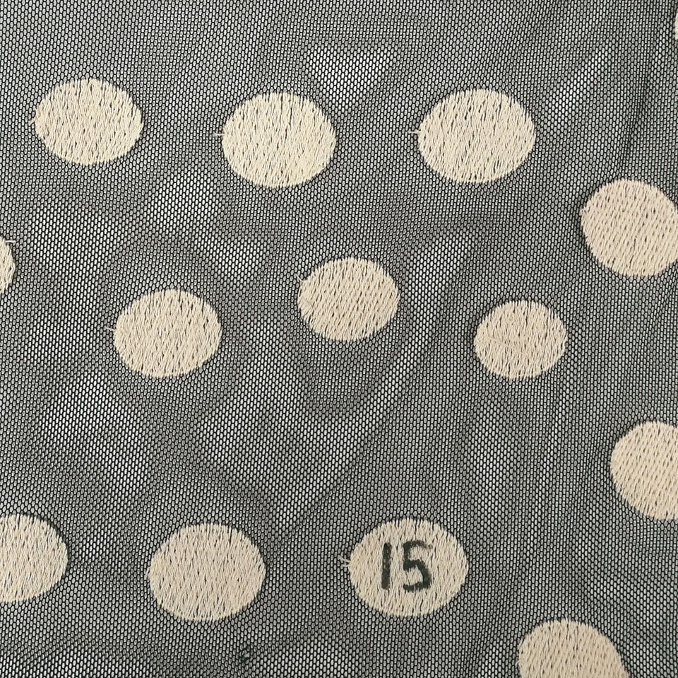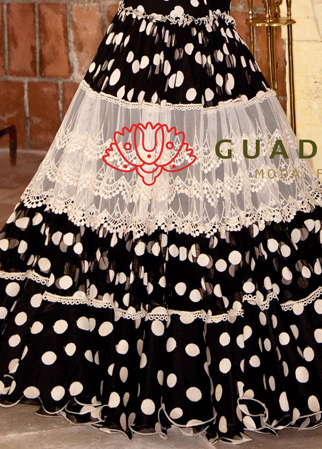 黒地にアイボリーの水玉刺繍レースに、クラシカルな雰囲気の豪華な装飾レースを贅沢に使用した、とてもエレガントでシックな雰囲気のモデルです。