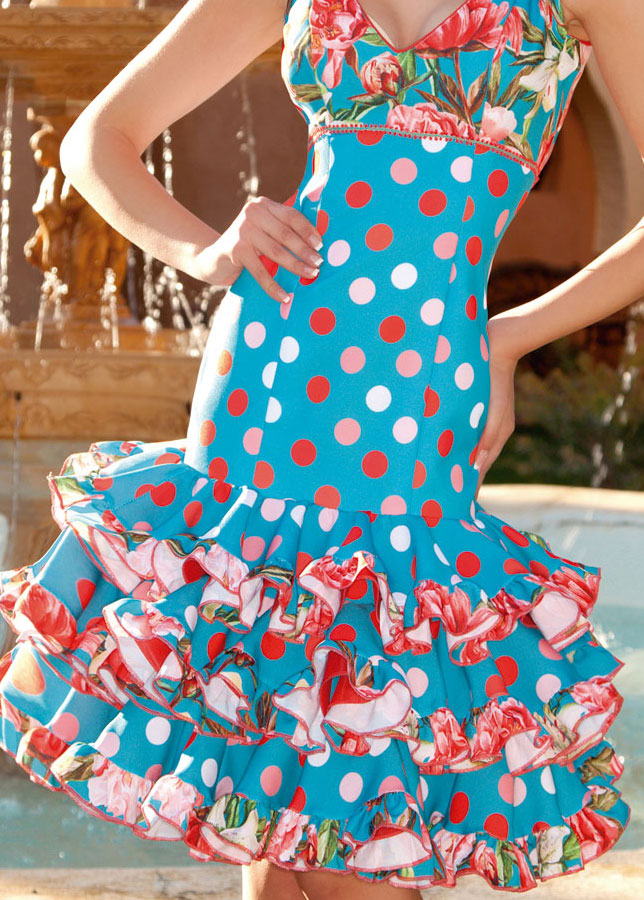 水色にピンク・赤系の配色がフレッシュでガーリーな雰囲気のミニワンピース。